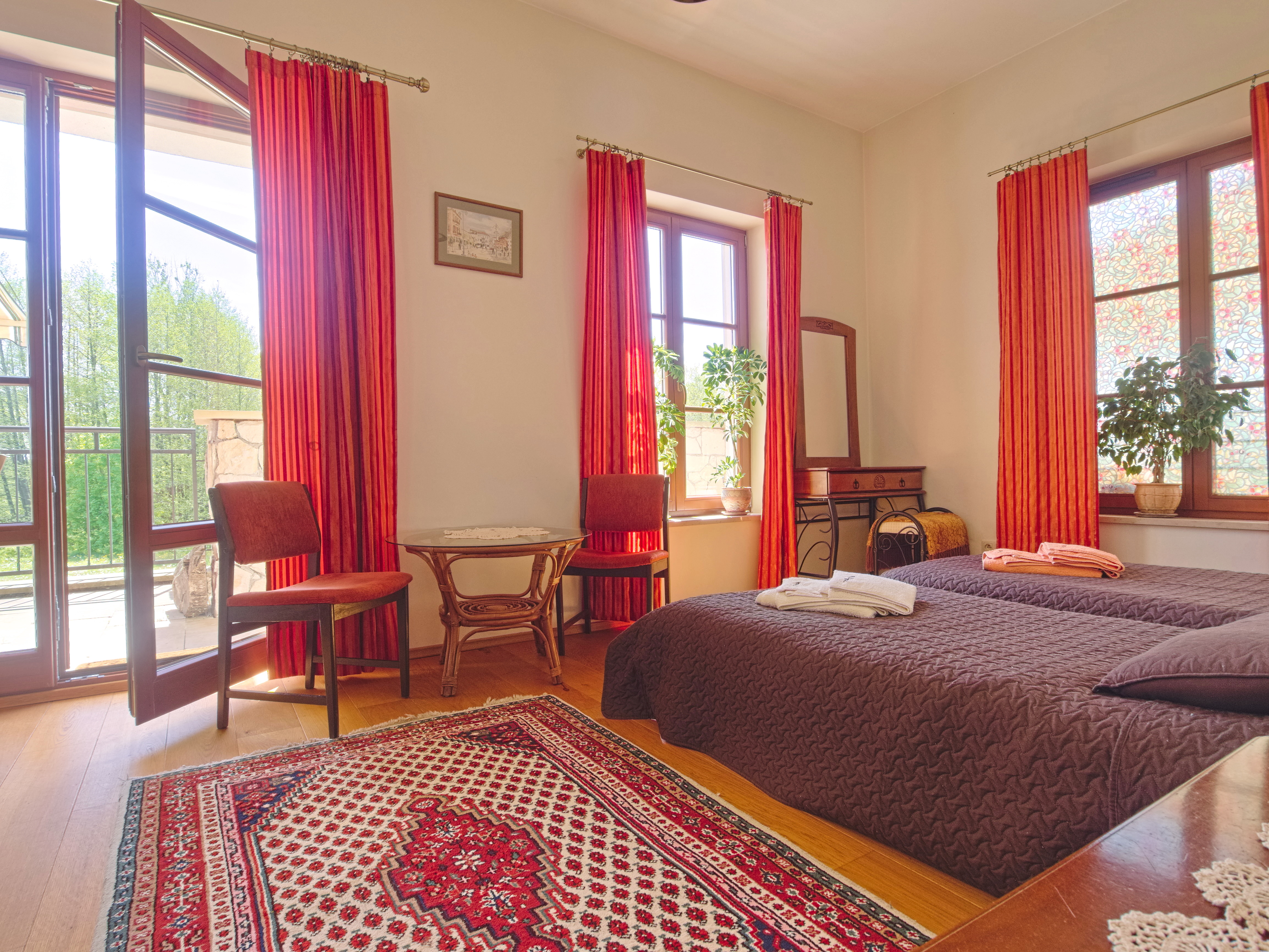 Cisza, spokój, pola ozdobione kępami drzew, spokojne wsie i małe, zabytkowe miasteczka, w pobliżu zalew Chańcza – raj dla wędkarzy i amatorów kąpieli. Dom w stylu śródziemnomorskim - pokoje 2, 3 os. z łazienkami, salon, taras, kuchnia oraz kameralny domek drewniany dla 2 osób, wokół duży, zielony teren rekreacyjny z oczkiem wodnym, rzeczką, miejscem na ognisko, parkingiem.
