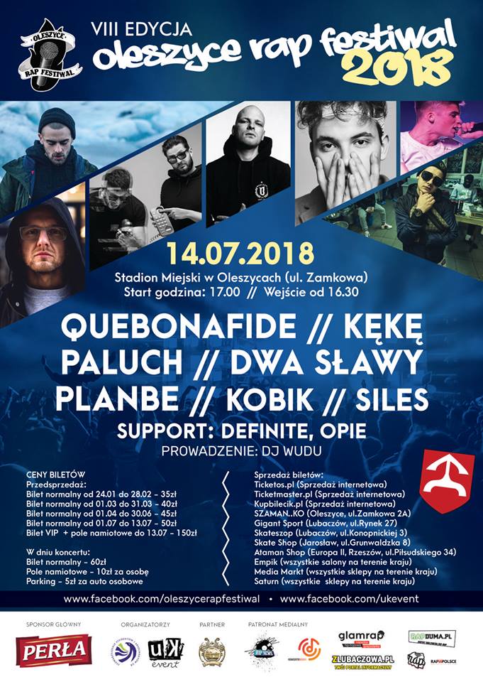 14 lipca 2018r. odbędzie się kolejna edycja największego hip-hopowego festiwalu w południowo-wschodniej Polsce! Oleszyce Rap Festiwal to wydarzenie, na które od lat zjeżdżają fani hip-hopu z całej Polski.