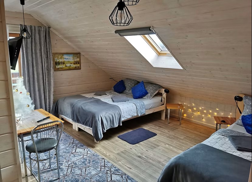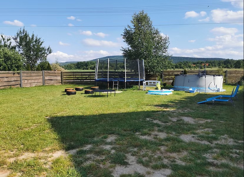 Już od pierwszych chwil poczujesz tu wyjątkową atmosferę, w której sielski klimat spotyka się z bogactwem atrakcji. Na terenie gospodarstwa można spotkać wiele przyjaznych zwierząt, które chętnie dadzą się nakarmić – wystarczy zabrać ze sobą kapustę lub marchewkę. Dzieci znajdą tu plac zabaw, trampolinę, boisko do siatkówki oraz różne pojazdy, które zapewnią im mnóstwo radości. Tuż za ogrodzeniem rozciąga się las, idealny na spacery i grzybobranie, a wieczory można spędzać przy altanie, korzystając z miejsca na grill i ognisko. Do dyspozycji gości pozostaje także wspólna kuchnia i jadalnia z pełnym wyposażeniem, a dla chętnych istnieje możliwość zamówienia domowych obiadokolacji.